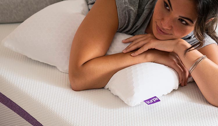 Purple's innovative No Pressure® support system features The Purple Grid™. This flexible material adapts to your body's natural curve and complements your sleep position for personalized support. Plus, it supports the unique pressure of your hips and shoulders while firmly supporting your back's shape.