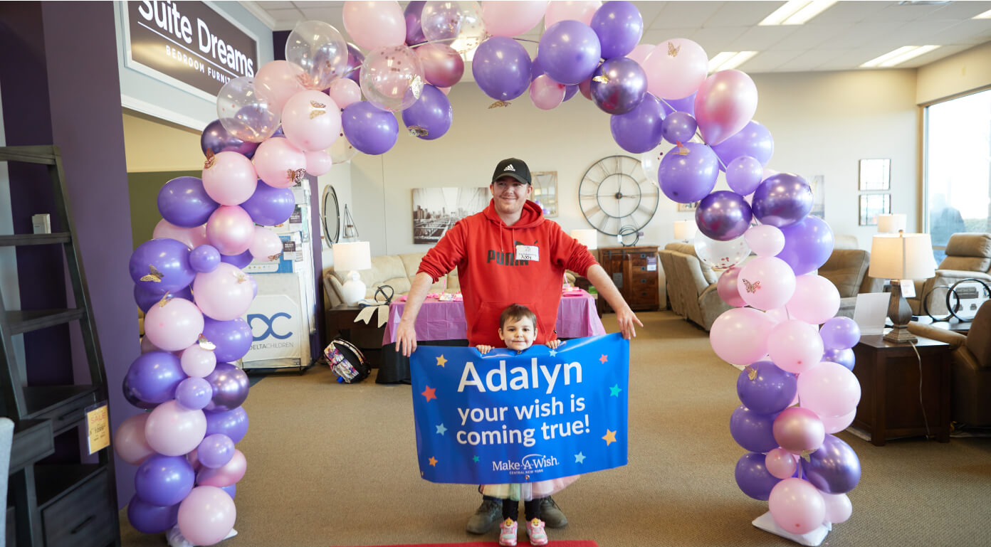 We helped grant another wish! Thank you to everyone who joined us to celebrate Adalyn, our 5-year-old Make-A-Wish recipient. Pink was the color of the day as Adalyn selected a bedroom set of her choice. We are honored to continue to partner with Make-A-Wish to fulfill the wishes of children in our community.